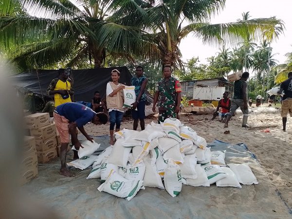 Timika – Babinsa Koramil 1710-01/Kokonao, Kodim 1710/Mimika Sertu Novian Batalyob dan Praka Rinto Aruri melaksanakan kegiatan pendampingan petugas Bulog Kancab Timika dalam pendistribusian beras bantuan untuk warga miskin di wilayah Distrik Amar, Kab. Mimika, Kamis (01/01/2026). Langkah ini dilakukan oleh Babinsa untuk memastikan penyaluran beras raskin ini sampai ke penerima kepada warga miskin yang telah terdata sebelumnya.