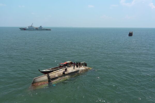 Komandan KN Tanjung Datu–301, Kolonel Bakamla Rudi Endratmoko, S.E., M.M., M.Tr.Opsla, melaporkan bahwa hingga saat ini upaya evakuasi pengangkatan badan kapal masih terus berlangsung dengan metode tradisional menggunakan drum oleh pihak kapal. “Penanganan ini merupakan wujud nyata kehadiran Bakamla RI di lapangan sebagai garda depan penjaga keselamatan dan keamanan laut. Kami terus melakukan koordinasi dan pendampingan hingga proses evakuasi selesai,” ungkapnya.