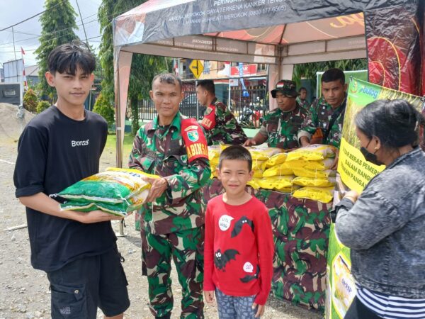 Timika – Di lapangan Koramil 1710-02/Timika, Jl. Yos Sudarso, Distrik Mimika Baru, Kabupaten Mimika, Kodim 1710/Mimika menggelar acara gerakan pangan murah, Selasa (12/08/2025). Kegiatan tersebut dipimpin langsung oleh Dandim 1710/Mimika, Letkol Inf M. Slamet Wijaya, S.Sos., M.Han., M.A. yang bertujuan untuk menjaga stabilitas pasokan dan harga pangan.