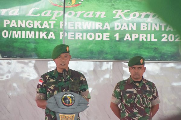 Timika – Komando Distrik Militer (Kodim) 1710/Mimika menggelar acara laporan korps kenaikan pangkat prajurit di Pendopo Darmawangsa pada Rabu (1/4/2026). Kegiatan tersebut dipimpin oleh Kepala Staf Kodim 1710/Mimika, Mayor Inf Abdul Munir, yang mewakili Komandan Kodim 1710/Mimika, Letkol Inf Jozanda.