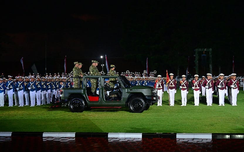 (Puspen TNI). Panglima TNI Jenderal TNI Agus Subiyanto menghadiri Upacara Parade Senja dan Penurunan Bendera Sang Merah Putih yang dipimpin langsung oleh Presiden RI Prabowo Subianto dalam rangkaian kegiatan Retret Kepala Daerah, bertempat di Lapangan Pancasila Akademi Militer (Akmil) Magelang, Jawa Tengah, Kamis (27/02/2025).