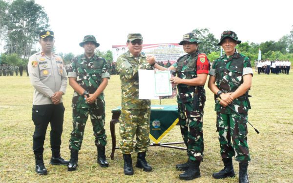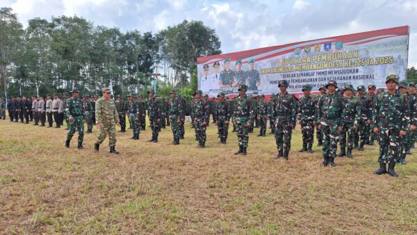 Belitung Timur, Bupati Belitung Timur Kamarudin Muten dengan berseragam retret menjadi Inspektur Upacara sekaligus membuka secara resmi program TNI Manunggal Membangun Desa ( TMMD) ke 125 tahun 2025 Kodim 0414 Belitung dengan tema” Dengan Semangat TMMD, Mewujudkan Pemerataan Pembangunan dan Ketahanan Nasional di Wilayah,’
