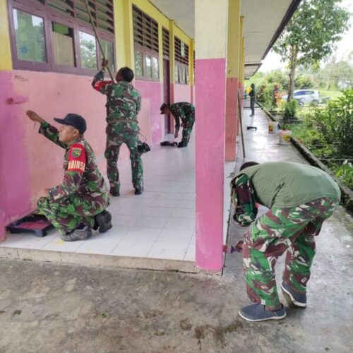 “Kegiatan ini difokuskan pada pengecatan dinding luar dalam gedung sekolah guna mendukung proses belajar mengajar yang lebih baik,” kata Dandim. (Pendim 1710/Mimika)
