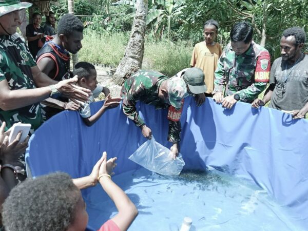 Timika – Satuan Tugas (Satgas) TNI Manunggal Membangun Desa (TMMD) kembali menunjukkan kepeduliannya kepada masyarakat. Dalam rangka mendukung Program Unggulan Kepala Staf Angkatan Darat (Kasad), Satgas TMMD memberikan bantuan berupa kolam ikan dan bibit lele kepada warga di Kampung Naena Muktipura, Distrik Iwaka, Kab. Mimika. Rabu (14/5/2025).