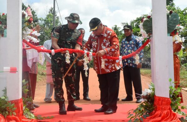 Belitung Timur, Wakil Bupati Belitung Timur (Beltim), Khairil Anwar dan Komandan Komando Distrik Militer 0414/ Belitung, Letkol. Inf. Karuniawan Hanif Arridho meresmikan jalan hasil program Tentara Manunggal Membangun Desa (TMMD) ke-125 di Desa Simpang Pesak Kecamatan Simpang Pesak, Kamis (21/8/25).